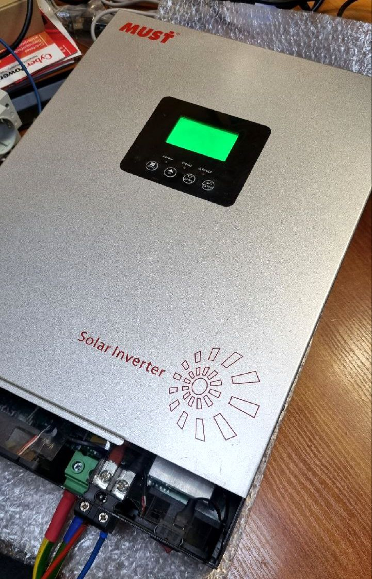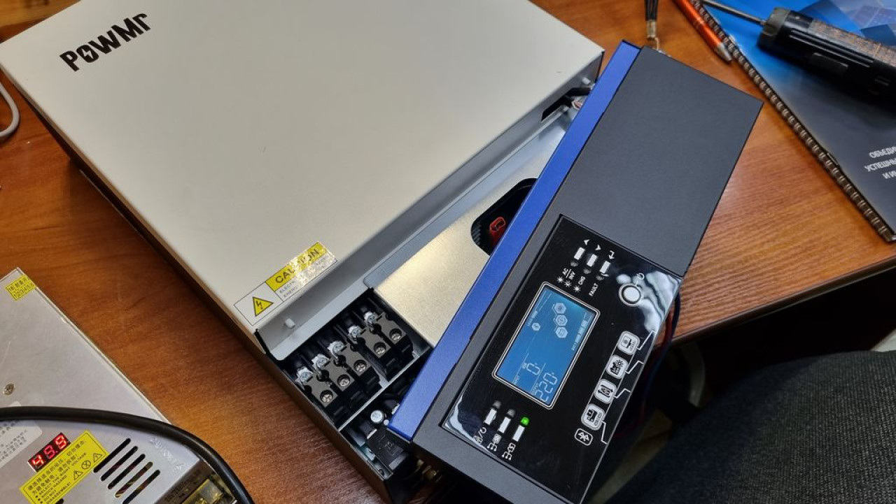 Инвертор с маркетплейса, максимально удешевлен, нет даже предохранителя в цепи АБ... Сразу с покупки не заряжал АБ от солнечных модулей, при этом как бесперебойник работал исправно. Отремонтирован!